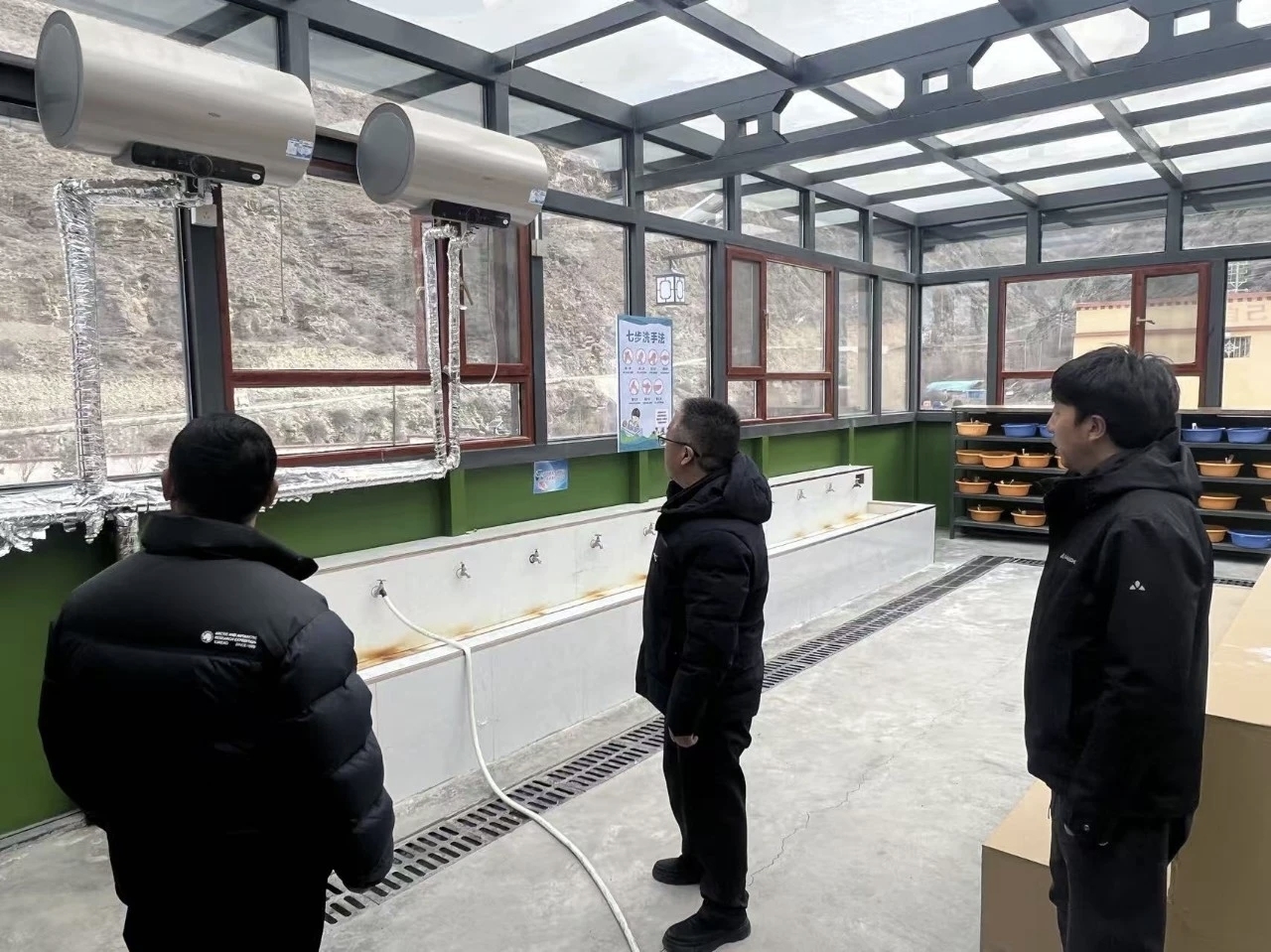 在色乡小学,付成聪实地检查校园食品安全、消防安全,详细查看学生宿舍、洗漱环境与管理情况,全面了解完工项目运行使用情况,了解学校存在的困难问题。