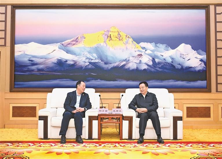 王君正代表自治区党委对杨贤金一行表示欢迎,对天津大学给予西藏的关心支持表示感谢。他说,天津大学历史悠久、文化底蕴深厚,在不同历史时期为国家培养了大批优秀人才,在国家建设、民族进步和教育事业发展中发挥了积极作用。长期以来,天津大学紧密结合西藏实际,不断深化交流合作,为西藏经济社会发展作出了积极贡献。习近平总书记高度重视西藏工作,为西藏明确了稳定、发展、生态、强边四件大事,推动各项事业不断取得新成效,社会大局持续稳定,经济高质量发展保持良好势头,生态文明建设成效显著,固边兴边富民行动扎实推进,呈现出一派欣欣向荣的发展景象。